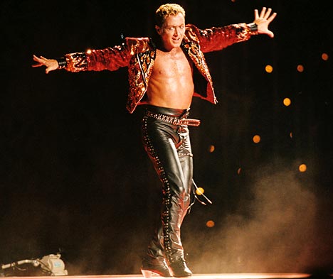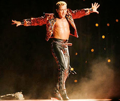 Undeniably, Chicago-born Flatley can hoof, and seeing him live was worth the schlep to Anaheim for The Leaf (read my 2005 Los Angeles Times review here). It seems, though, that in 2006, the King of the stiff-torsoed/manic leg dance was felled by a mysterious virus, leaving him unable to walk, much less strut around onstage like a preening peacock in between bouts of executing fusillade-style footwork, reportedly 35 taps a second. (Or so saeth the Guinness Book of Records.)